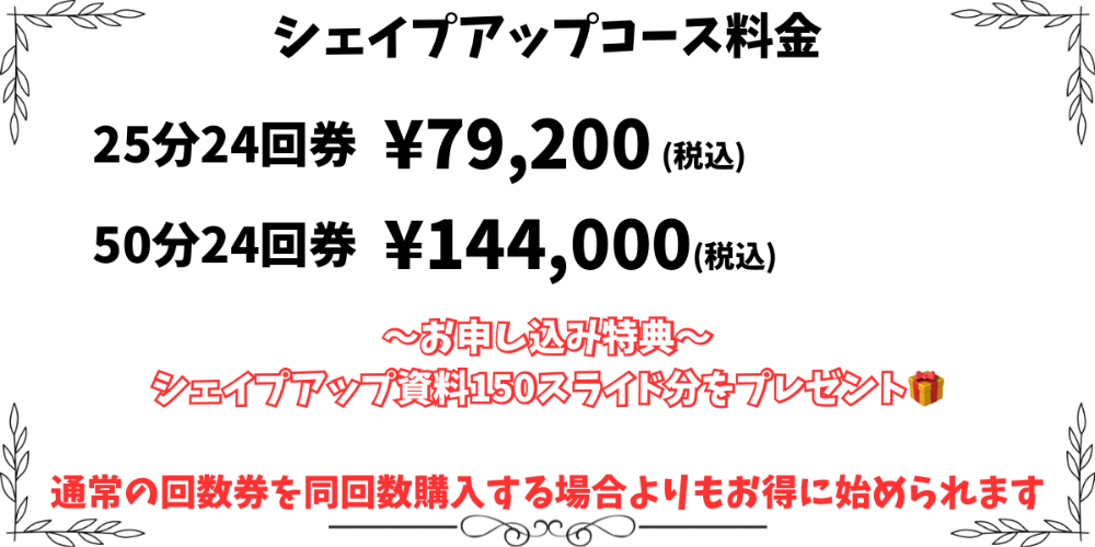 当スタジオのシェイプアップコースでは現金のみ2分割払いも可能です
