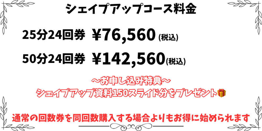 当スタジオのシェイプアップコースでは現金のみ2分割払いも可能です