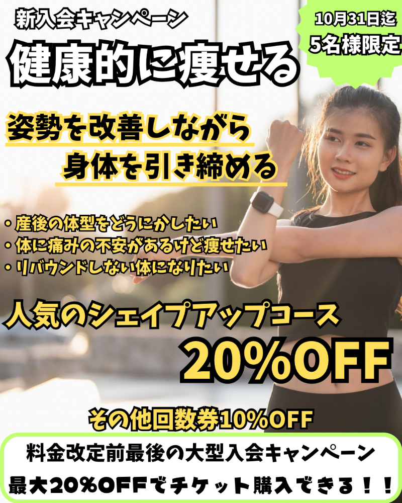 料金改定前最後の超お得なキャンペーンですのでこの機会に是非痩せていきましょう!!