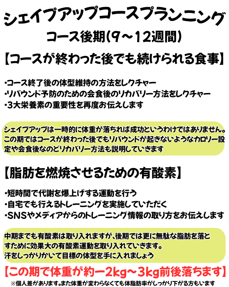 また、仕事の繁忙期は週1回、閑散期に週2回と御自身のペースでカスタマイズができるのも当スタジオのシェイプアップコースの良い点です